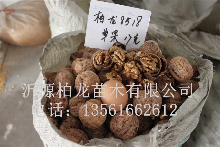 沂源柏龍苗木有限公司(柏龍苗木基地),建在魯山山麓8518核桃選育地,是沂源資質深,規模大,經驗足的專業實體苗木公司。早在70時代就為林業局定點苗木基地。2006年選育8518核桃苗。公司做事以誠信為宗旨,創新為目標,已逐步打造出柏龍系列的品牌苗,先后選育了750萬株8518核桃苗,遠銷21個省市。2012年隨市場需求,增育了文玩核桃苗(麻核桃),同時在縣政府指導下進行培育了“沂源紅”蘋果苗!耙试醇t”蘋果苗一經問世,因其是短枝型,易管理,結果早,產量高,果色艷麗,條紅,口感爽脆,是名副其實的優質品種。